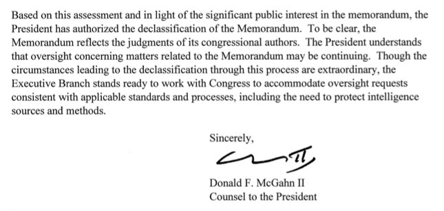 Don McGahn, White House counsel, sent the formal letter back to the Hill, authorizing the release without redactions:pic.twitter.com/tQhMdtKeBh
