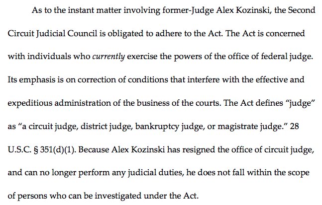 Here's where the 2nd Circuit Judicial Council tosses out the Kozinski complaint —>pic.twitter.com/btK6gUQQTK