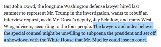 NYT: Trump’s Lawyers Want Him to Refuse an Interview in Russia Inquiry - https://www.nytimes.com/2018/02/05/us/politics/trump-lawyers-special-counsel-interview.html … / Trump's White House lawyer Ty Cobb declined to comment on the report, and Trump's outside lawyers have not responded to requests for comment.pic.twitter.com/MtNbptx2VG