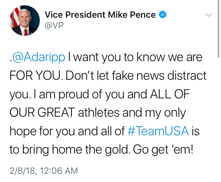 “One reporter trying to distort 18 yr old nonstory” that Pence never directly responds to questions about, including by Rippon, who then said he wanted to focus on his competition & would consider meeting Pence later, but Pence still drags him into it by tagging him directly.pic.twitter.com/7VaKQPxfXS
