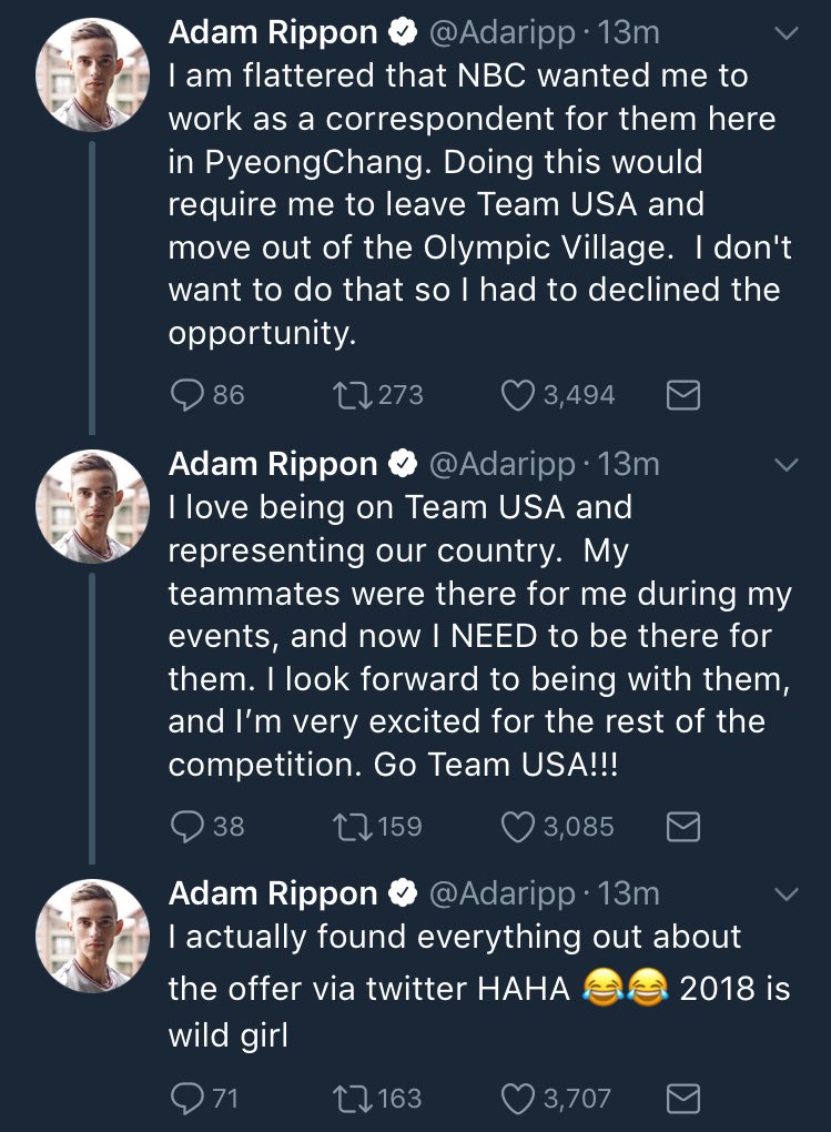 I'm bummed but completely understand. Hope the offer stands for when he's ready to take on his next adventure. Seeing the folks tripping over themselves to argue a trip to the olympics is somehow worthless without a gold medal has been... eye-opening.