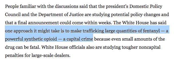 Then there was this absolutely bonkers story last night that the White House (and, apparently, DOJ) are considering ways to turn Singapore's drug policies into American law. https://www.washingtonpost.com/national/trump-administration-studying-possibility-of-seeking-death-penalty-for-drug-dealers/2018/03/09/4d9cc994-23c3-11e8-94da-ebf9d112159c_story.html?utm_term=.9935e9ae8257 …pic.twitter.com/IkMPDW6xHt