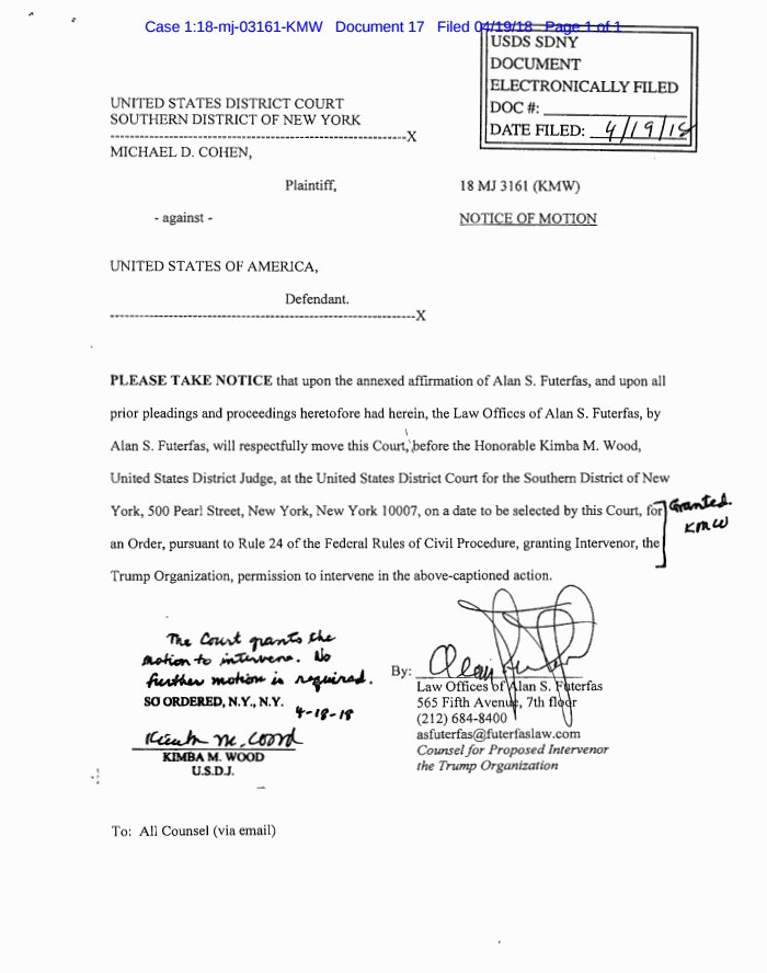 Why would the company have standing in this case? Cohen is the personal attorney to Trump. Or is he part of the Trump Corp. army?