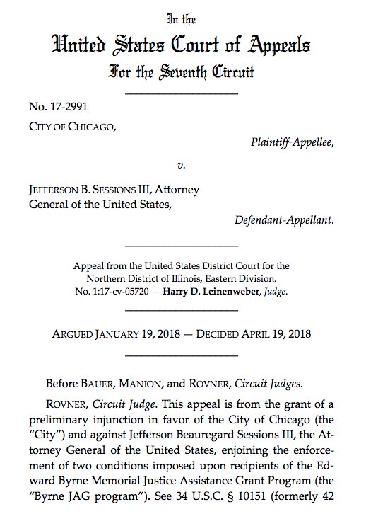 Two of the three judges — Rovner, who wrote the decision, and Bauer — uphold the nationwide injunction. Judge Manion would only have upheld it as to Chicago.