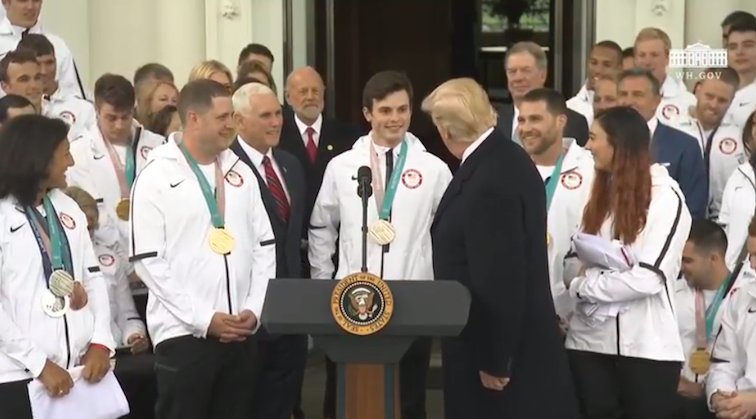 Trump calling Olympians up to "say a few words" is peak Trump. "When you win a gold medal, you know it's a good team."pic.twitter.com/y8K6tiW517