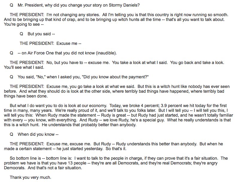 I'll say it 4 u since I'm not a journalist...not that Guiliani is above lying but he told the truth the 1st time, the Liar-in-chief thinks he can lie his way out of everything & his flunkies will fall in lockstep. They're all lying!!!! Mueller will figure it out, he's not a liar.