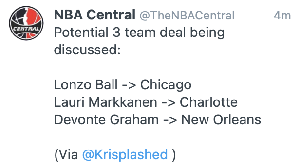 Are the Hornets out on Lauri or does that become part of a NO-CHI-CHA S/T?https://twitter.com/ShamsCharania/status/1423499730970157056 …