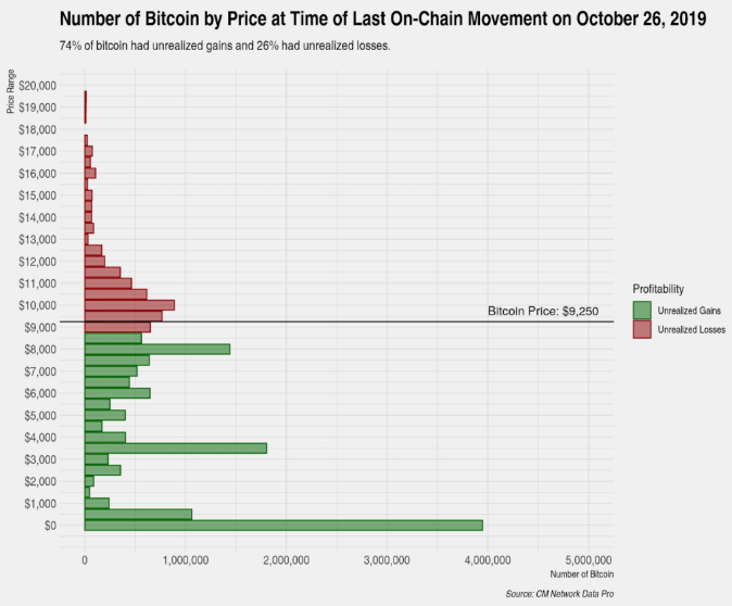 @Coinmetrics depicting # of Bitcoin that are in the money vs out of the money using cost basis @ time they last were moved on-chain Current Breakdown: 74% of$BTC showing unrealized gains (ie current price > last moved price) 26% of$BTC showing unrealized losespic.twitter.com/tnsw5CTl6n