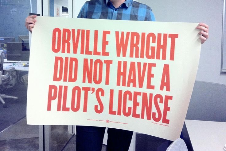 Love this poster. Anyone know who makes it or where I can buy one? "Orville Wright Did Not Have A Pilot's License"pic.twitter.com/PgfAFCTxuf