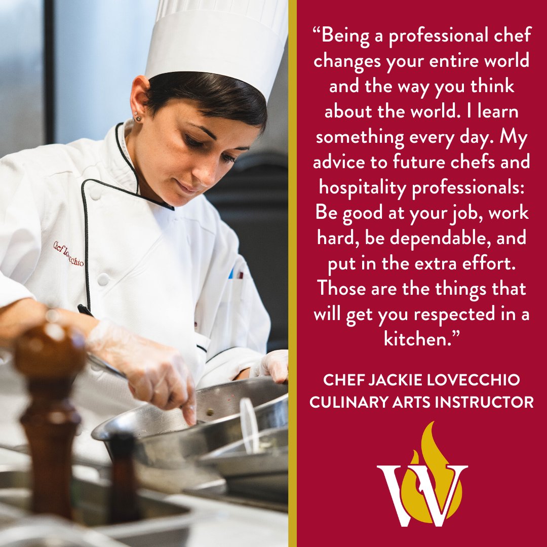 “My advice to future chefs and hospitality pros: Be good at your job, work hard, be dependable, and put in the extra effort. Those are the things that will get you respected in a kitchen.” -Chef Jackie Lovecchio, Culinary Instructor