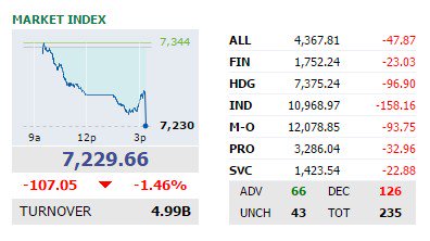 MARKET IS CLOSED PSEi at 7,229.66 DOWN by -107.05 pts or -1.46%pic.twitter.com/plUBLhcUhR