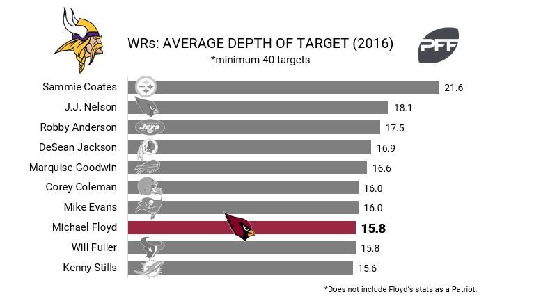 Free agent WR Michael Floyd has been linked to several teams lately (Vikings, Redskins). Mainly used as a deep threat so far in his career.pic.twitter.com/tYNGPGlS1K