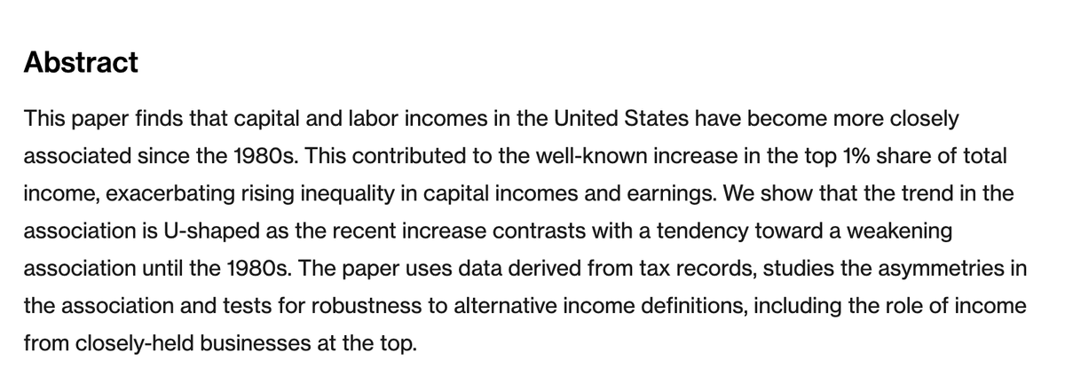 Capital and labor incomes in the United States have become more closely associated since the 1980s. Just accepted new paper by Tony Atkinson and Christoph Lakner (