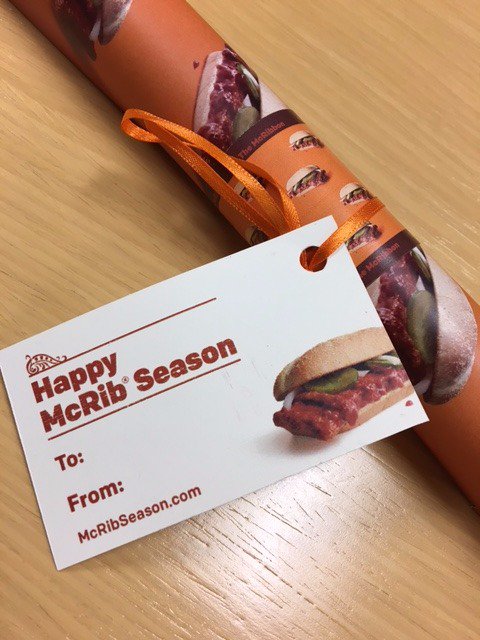 Want to give a delicious gift this year!? RT for your chance to win a roll of MCRIB WRAPPING PAPER! That's right...McRib wrapping paper!pic.twitter.com/cYgEuR9Lud
