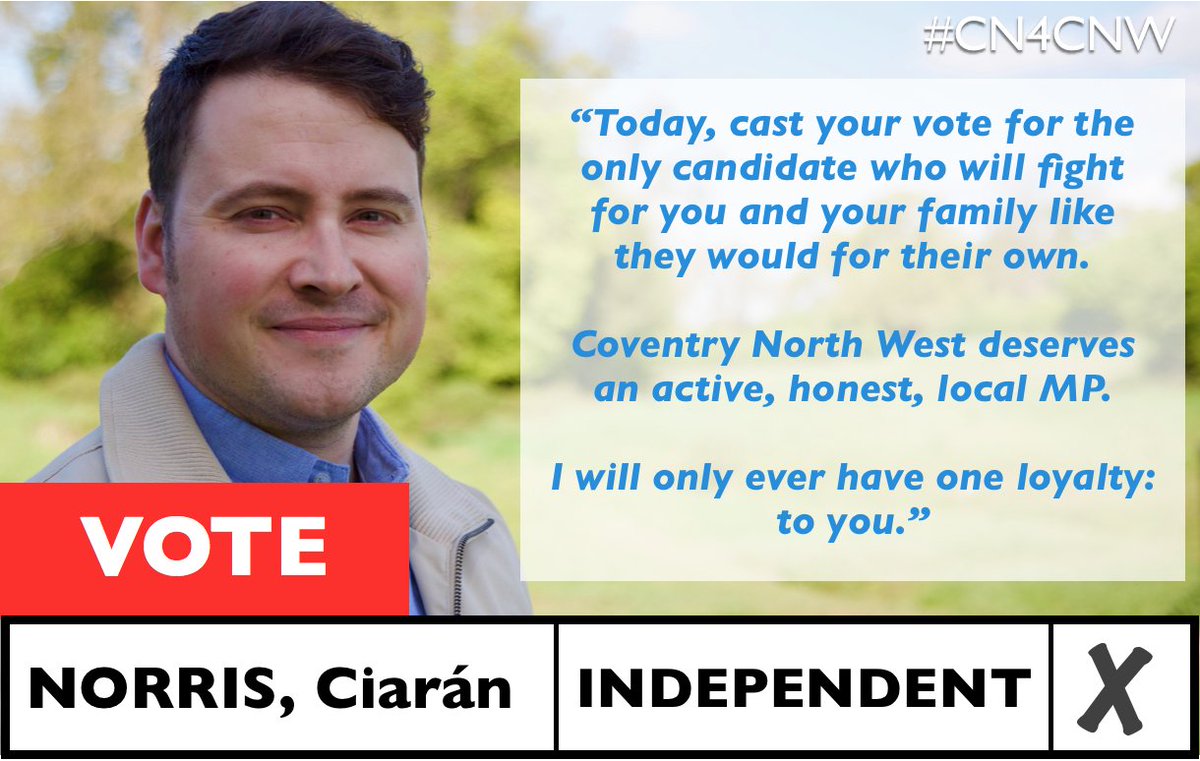 #CoventryNorthWest! Vote for an active, honest, local MP who will be loyal to Cov! Vote for Ciarán Norris#CN4CNWThanks. Twitter will use this info to make your timeline better. Undo -