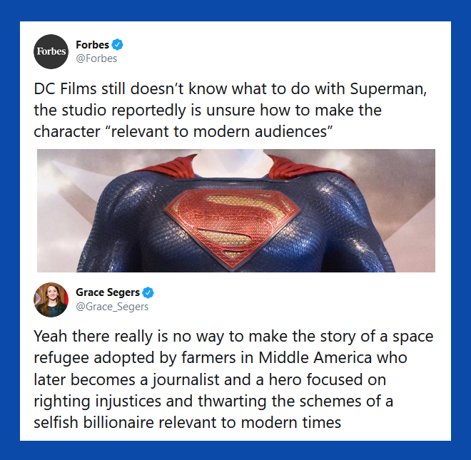 "I know you from Twitter" - Embarrassing for everyone involved - Humiliating - Too online "Your reputation precedes you" - Cool and scary - Mysterious - Potentially ominous - Old-timey villian