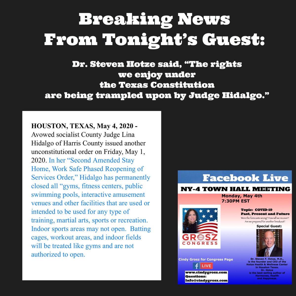 A Must Join In On #FacebookLive #ConstitutionalRights #Texas #MAGA2020 #KAG #cindygroszforcongress #AmericaFirst #BacktoWorkAmerica #tedcruzpic.twitter.com/uYrwdbv8To