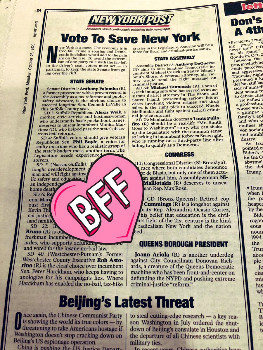 When your BFF is endorsed by @Nypost @Ariola4QnsBP @QueensYRs @QueensCountyGOP @CuomoCorruption #saveNY #Trump2020Landslidepic.twitter.com/ZR2C801cKC
