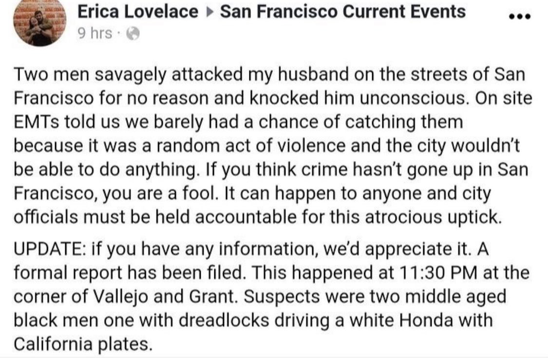 Two Black men attack a white guy at the corner of Vallejo and Grant in San Francisco! I sure hope the victim signed the Chesa Boudin recall petition!pic.twitter.com/kqSHDwTFbR