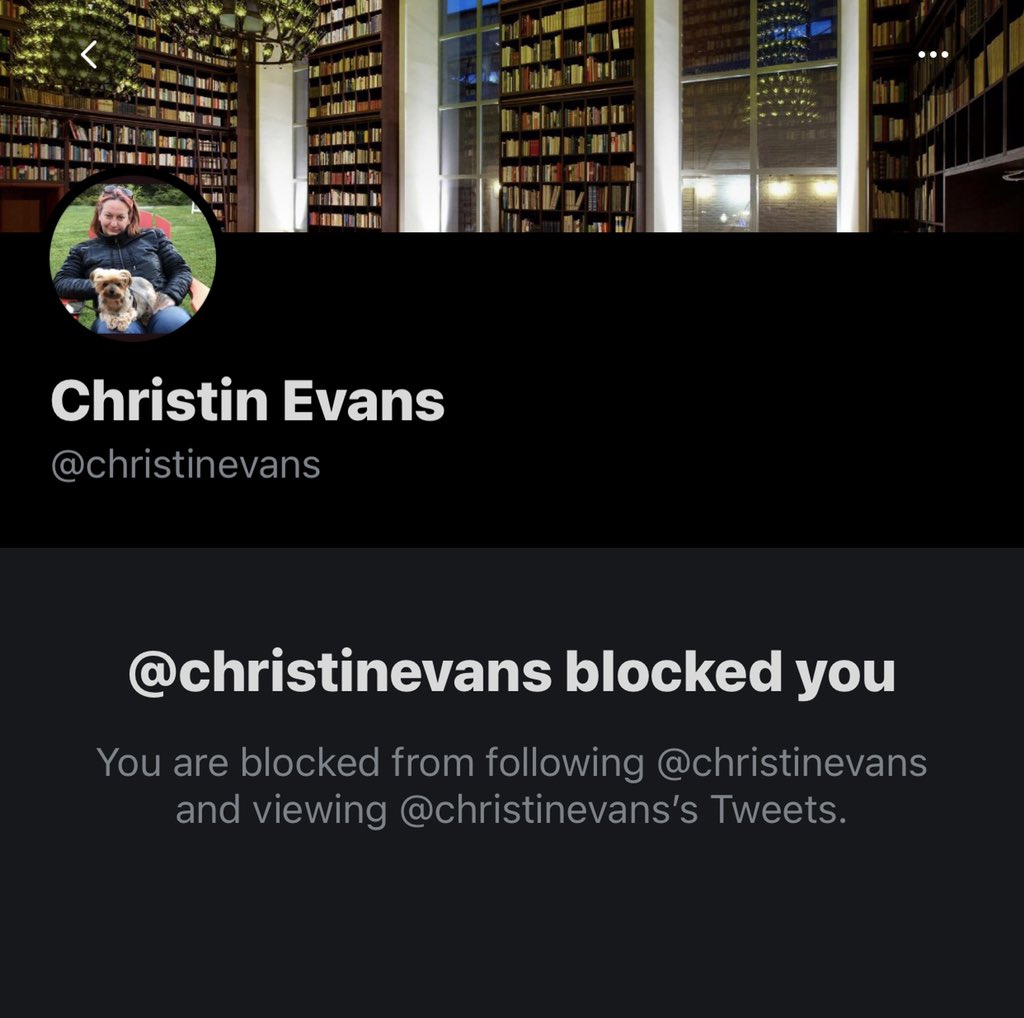 Interesting — has the same unusual spelling. Two accounts perhaps? At any rate once Dean got her out of jail she was back to blocking people on this account.https://twitter.com/citizenj17/status/1420414845485142024 …
