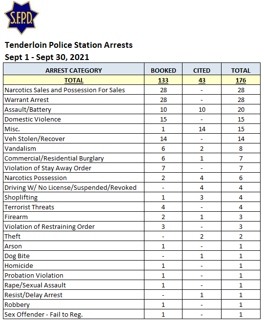 September 2021 TL arrests and reported crime stats. pic.twitter.com/AKEzor2kt4