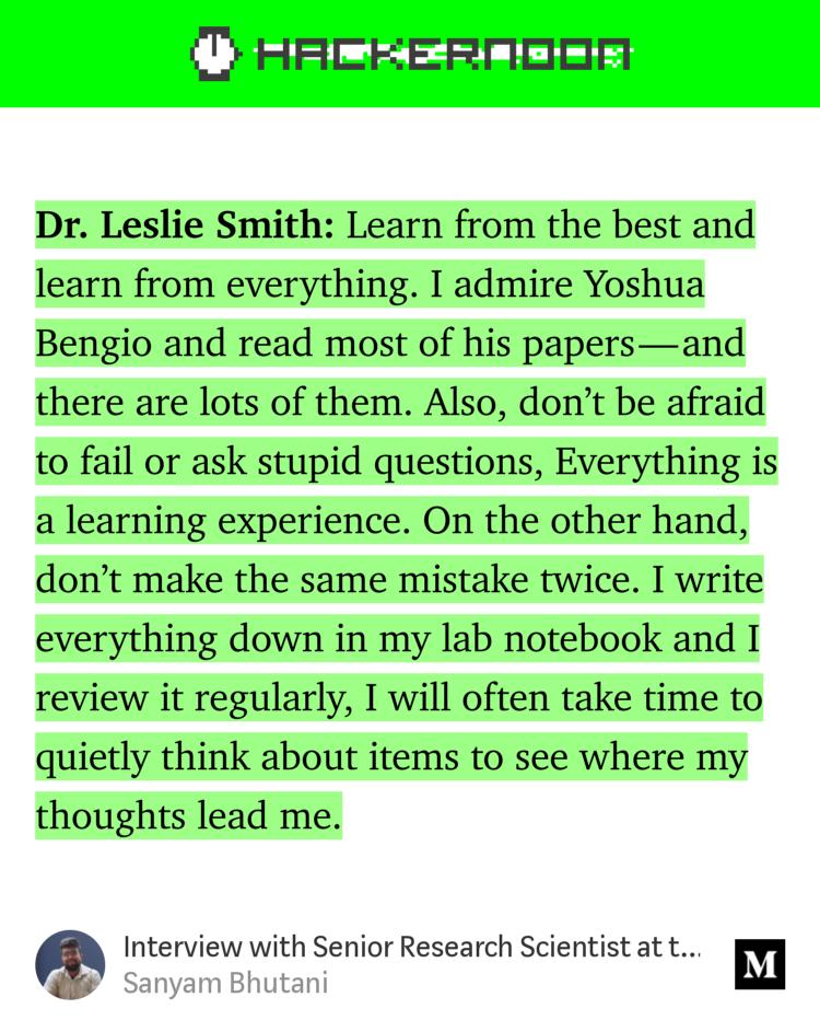 I'm super excited to share the Interview with another Machine Learning hero: Senior Research Scientist at the US Naval Research Laboratory: Dr. Leslie Smith @lnsmith613 published at @hackernoon