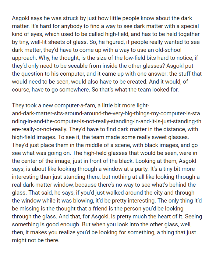 XKCD's Thing Explainer https://xkcd.com/thing-explainer/ … uses only the 1,000 most common words to explain complicated subjects. I gave the Grover Neural Network the same challenge and asked it to explain how to see Dark Matter. "To see it, the team made some really sweet glasses. "pic.twitter.com/wqtFILMu8u