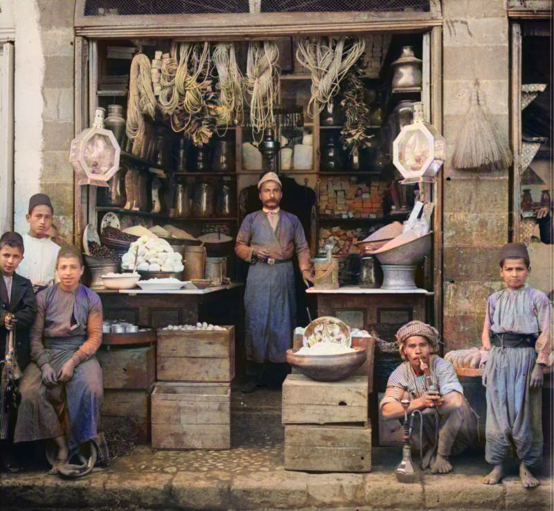 Shopkeeper in the Old City, Jerusalem, Palestine, c.1930s. #Deoldifypic.twitter.com/ir8212vZyW