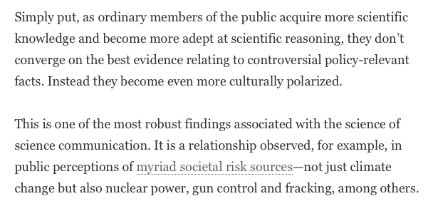 If you follow me on twitter, you are probably exceptionally rational. That means that, statistically, your beliefs about climate change are probably exceptionally irrational, because you have applied rationality selectively. https://blogs.scientificamerican.com/observations/why-smart-people-are-vulnerable-to-putting-tribe-before-truth/ … pic.twitter.com/TxtDLA7FYJ