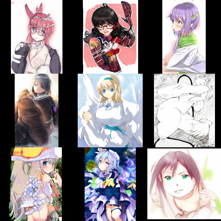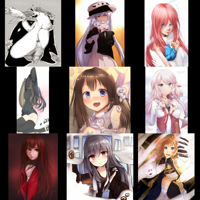 Run #83, BigGAN 256x256, one month of training, danbooru2019.pic.twitter.com/UJJTUJMB4H