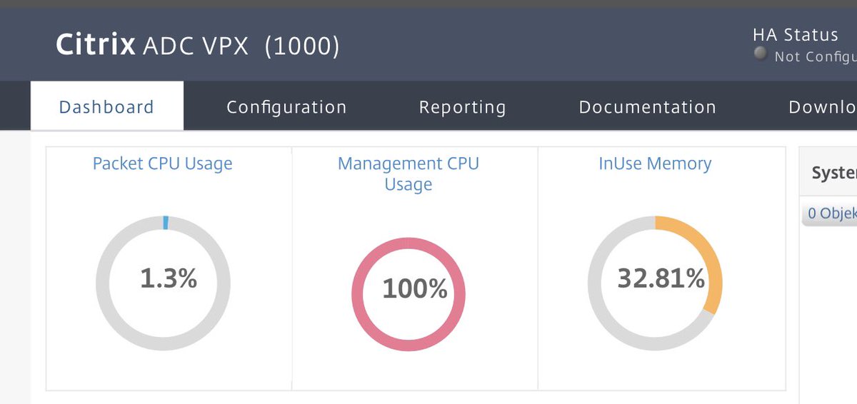 Seeing 100% Management CPU Usage on ADC with Firmware 13.0.47.24. Already tried to disable Callhome + reboot. No process visible with high cpu usage when running „top“ in the shell. VPX is hosted on VMware.pic.twitter.com/uIdNCWoExv