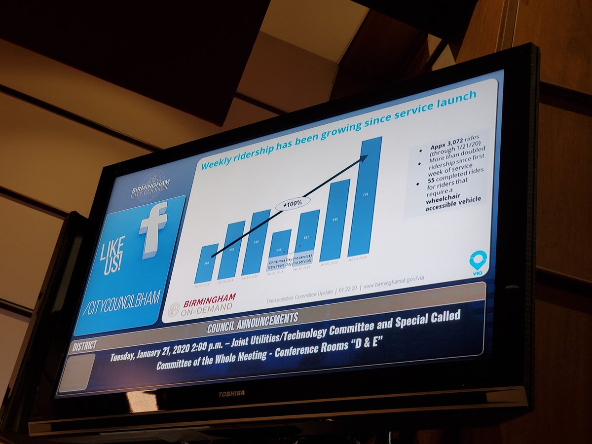 @cityofbhamal reports almost 3100 rides on@ridewithvia since Dec. 3rd launchpic.twitter.com/PMvxQivC7m
