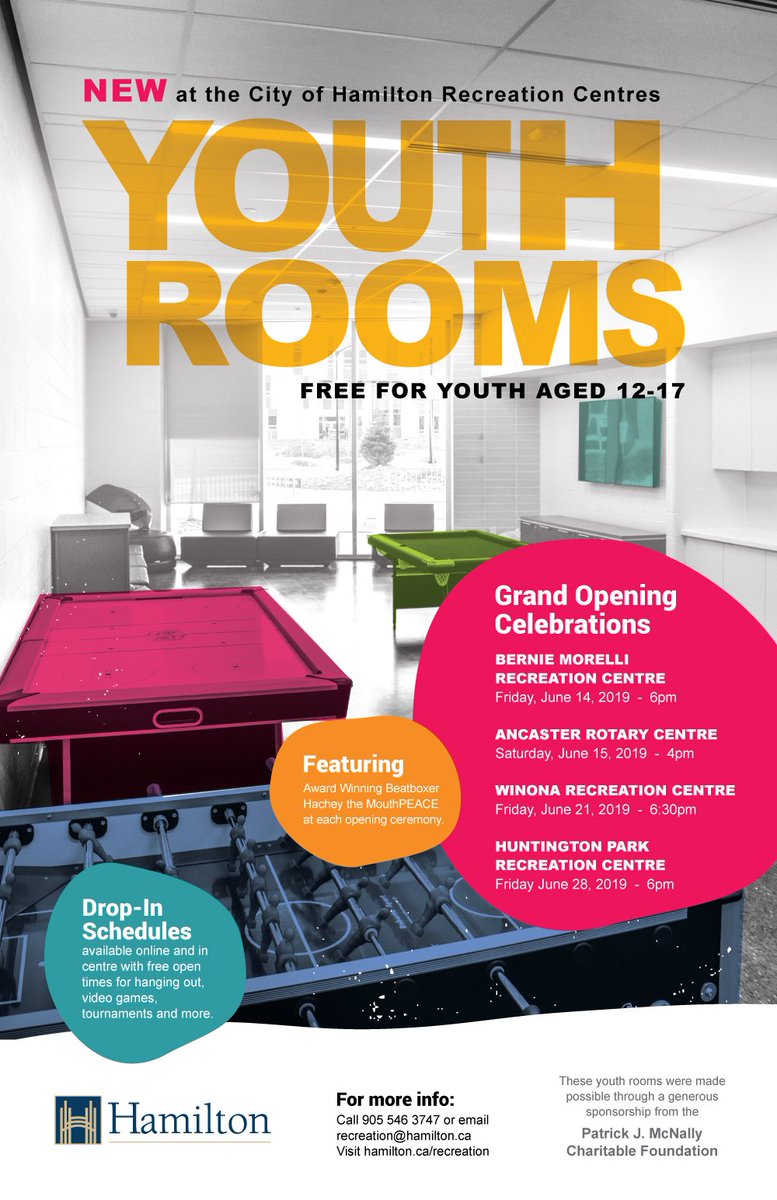 Friday: Join us at Huntington Park Recreation Centre for the grand opening celebration of the new YOUTH ROOM, for youth aged 12-17!