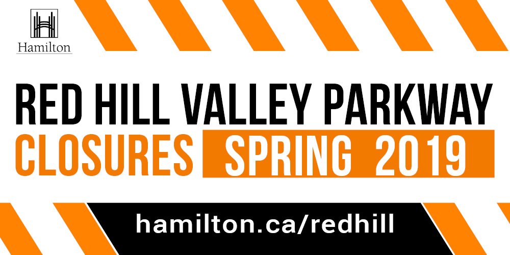 Southbound lanes on the Red Hill Valley Parkway are CLOSED approx 3 weeks. Full project info: http://bit.ly/2PXRWQ3