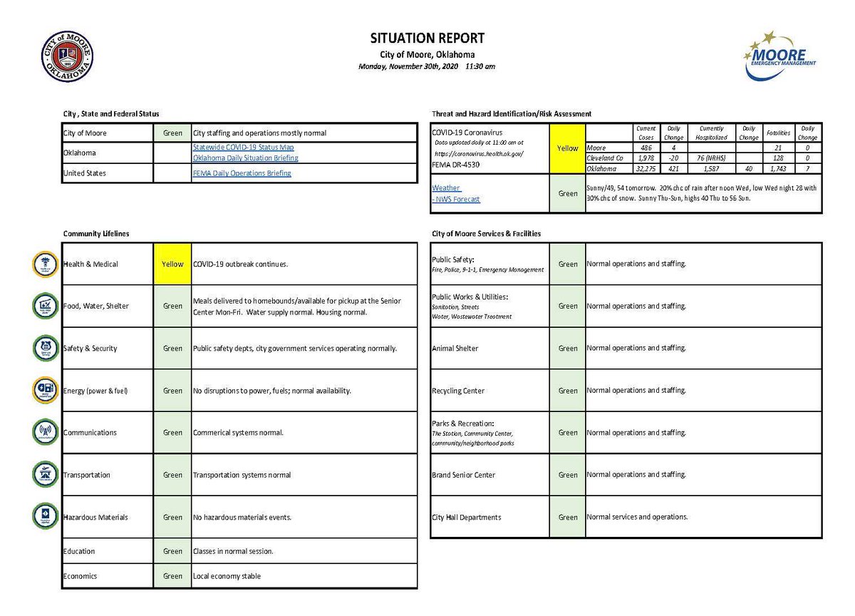 Situation Report for the City of Moore - Monday, November 30th, 2020 https://www.cityofmoore.com/upl.../Moore-SitRep-20201130.pdf …pic.twitter.com/gMme5L23iq