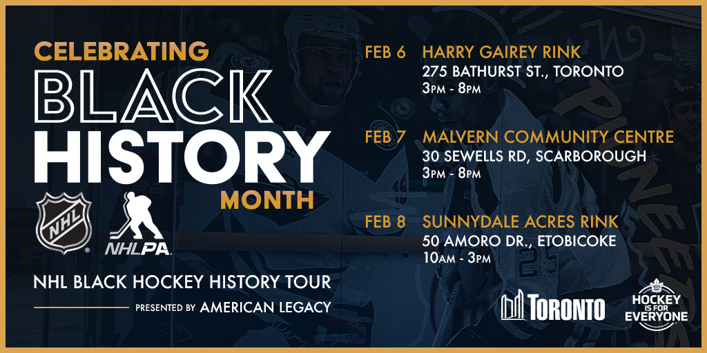 @NHL’s#BlackHockeyHistory mobile museum is making its first appearance in Toronto from Feb. 6-8! Anson Carter: “The Black Hockey Museum is a must see if you’re a hockey aficionado or a casual sports fan." Find out more about this free museum at http://nhl.com/fans/black-hockey-history …pic.twitter.com/my5eVgvvmZ