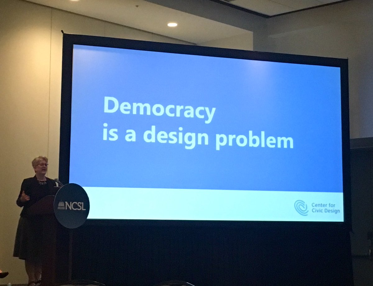 I never get tired of hearing @civicdesign @whitneyq say Democracy is a design problem! Can I get that in a poster for my office? @NCSLorg @danachispic.twitter.com/CaWV00n5zD
