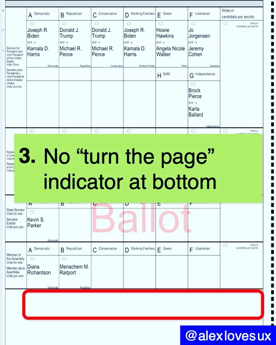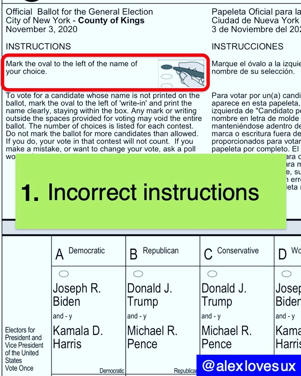 I just voted in my first federal election as a NY resident and was shocked at the blatant errors and horrendous usability of my NYC ballot. Here are the 6 issues that jumped out at me. #ballotdesign #Election2020 #Vote2020 #vote #ux #design #UserExperience #newyork #nyc #brooklynpic.twitter.com/IVO9OY4Un4