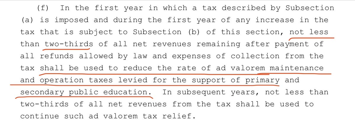 And the current Texas Constitution where it states that 2/3 any revenue from an income tax (WHICH IS NOT ON THE BALLOT) could only be used to pay down your M&O School property taxes (Bullock Amendment)pic.twitter.com/d8z2KwAbXu
