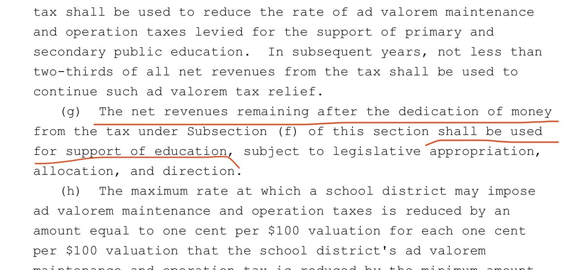 And the current Texas Constitution where it states that the remaining revenue, 1/3, could only be used to fund public schools. (Bullock Amendment)pic.twitter.com/JlFlwZxiEu