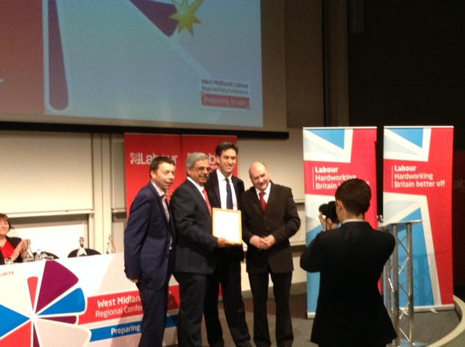 Cllr Ish Mistry receiving a very well deserved Merit Award from Ed Miliband !!pic.twitter.com/YlBuebbge5