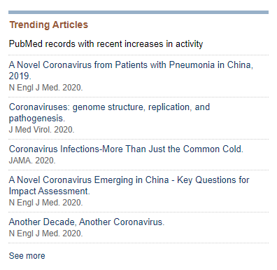 Trending today on PubMed.... #coronavirus #WuhanCoronovirus #nCoV2019pic.twitter.com/EuGXmGY5yX