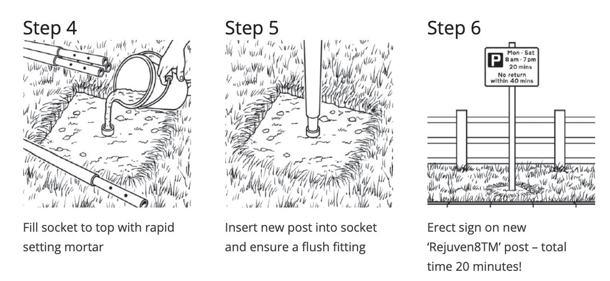 Replace rusty or damaged signposts on-site in 20 minutes… …take a look at the benefits of the Rejuven8™ post replacement system A new post grown from old foundationspic.twitter.com/XnlIqec4me