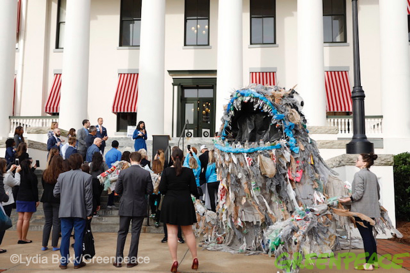 JUST IN: The plastic monster made a visit to the State Capitol in Tallahassee to urge Florida retailer,