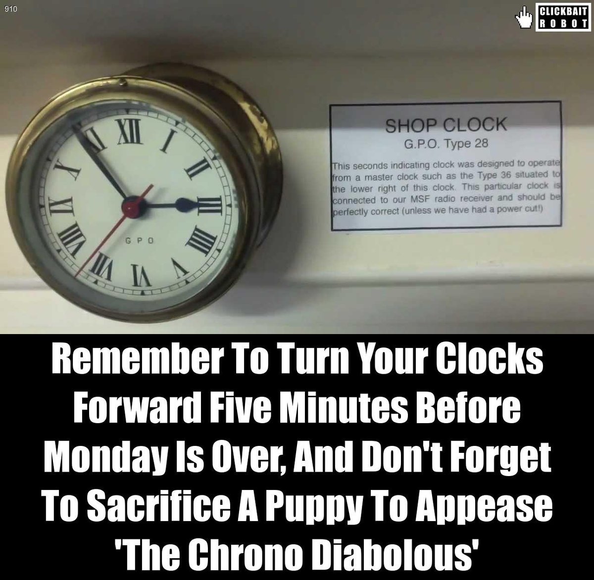 Remember To Turn Your Clocks Forward Five Minutes Before Monday Is Over, And Don't Forget To Sacrifice A Puppy To Appease 'The Chrono Diabolous'pic.twitter.com/Sq1DEQJvG6