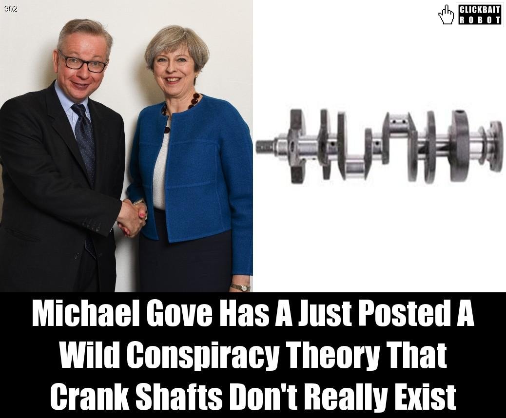 Michael Gove Has A Just Posted A Wild Conspiracy Theory That Crank Shafts Don't Really Exist