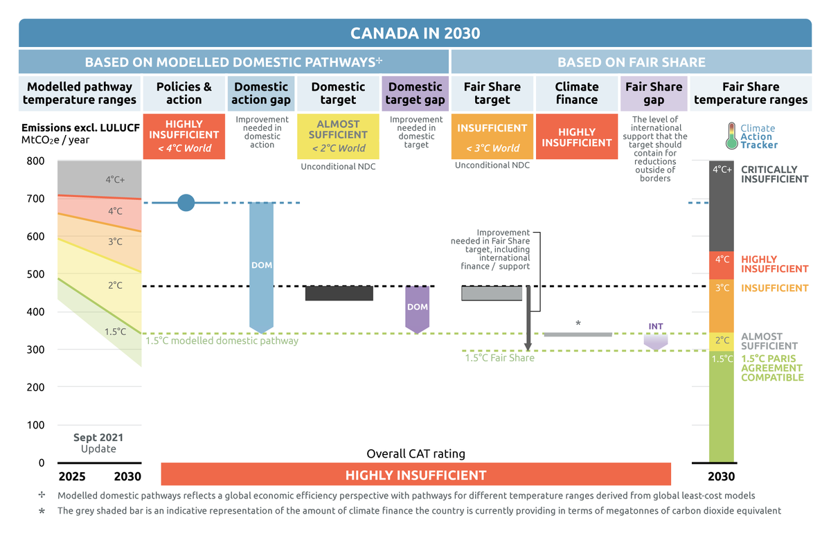 #Canada's overall rating drops to “Highly insufficient” - despite having a stronger target, it doesn’t have policies to meet it, and it is far from doing its#fairshare, and needs to increase#climatefinance. http://bit.ly/CAT_CAN pic.twitter.com/XNZp85JITZ