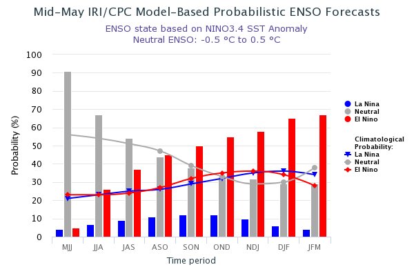 This forecast is purely what the models are predicting. The early-May forecast, which incorporates human judgement from IRI and @NWSCPC, is up on our site, along with more forecasting resources: https://iri.columbia.edu/our-expertise/climate/forecasts/enso/current/ … #IRIforecast