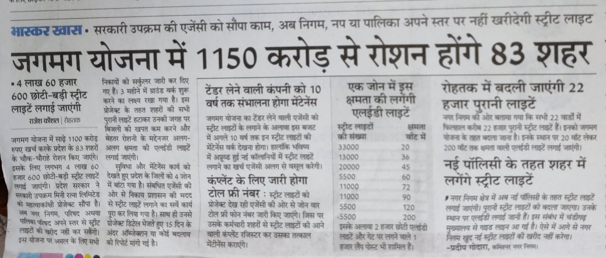 साढ़े चार लाख से अधिक स्ट्रीट लाइटों के साथ जगमग होगा हरियाणा।