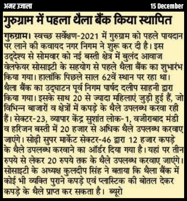#SwachhBharat की दिशा में एक और कदम बढ़ाते हुए गुरुग्राम में पहला थैला बैंक किया गया स्थापितpic.twitter.com/ezHBO4PuGr
